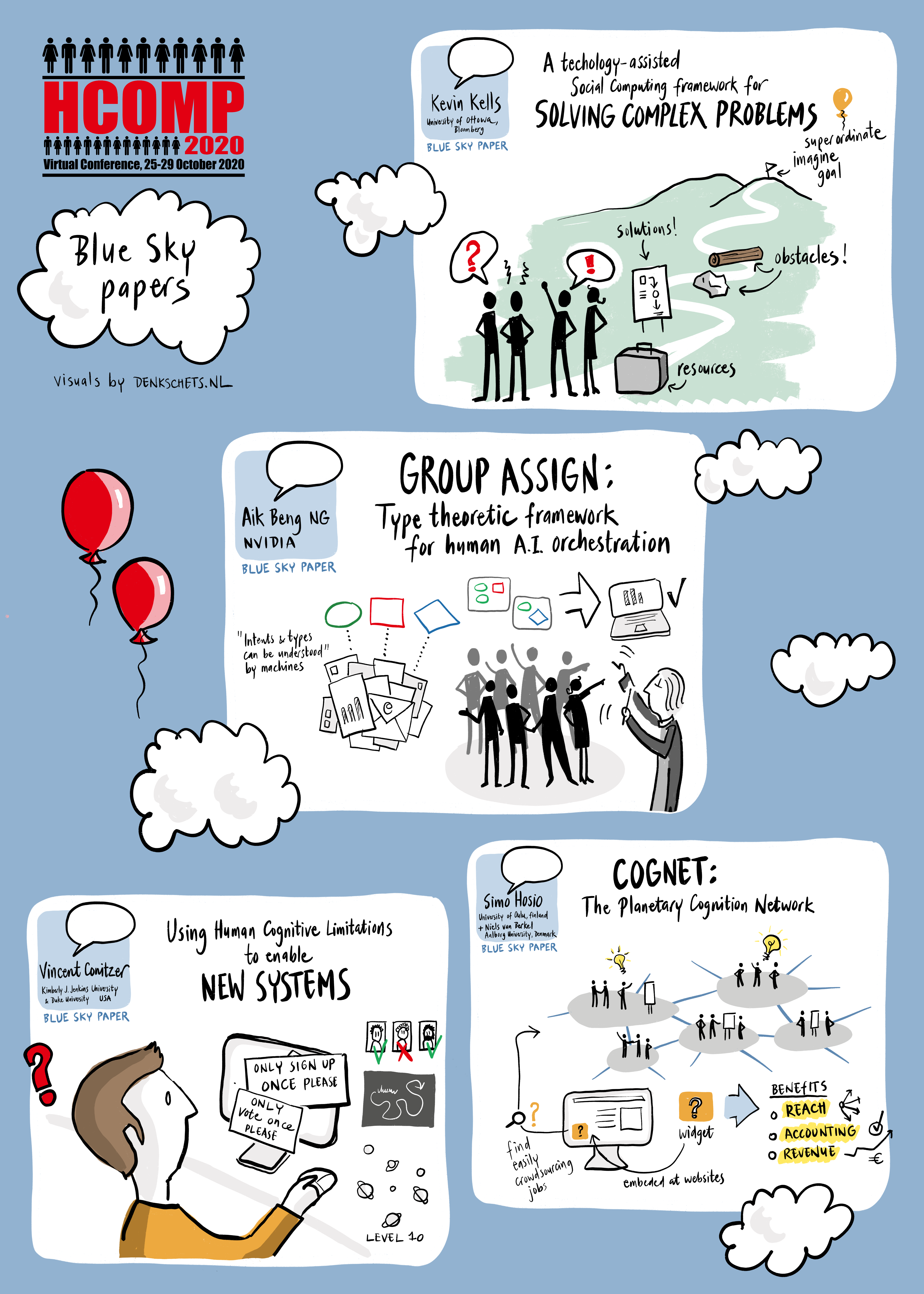 During the week, Dutch artist Elco van Staveren will create illustrations for the HCOMP papers. You can watch these illustrations come to life on the underline platform with the videos for Blue Sky and doctoral consortium sessions.